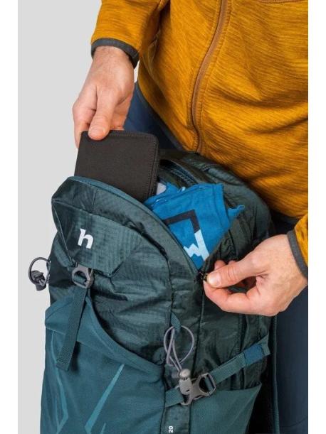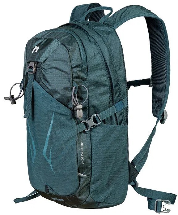 Jednokomorový trekový batoh Hannah ENDEAVOUR 20 l má anatomicky tvarovaný prodyšný Air vent zádový systém s nastavitelnými polstrovanými ramenními popruhy. Jednoduchý bederní pás lze v případě jeho nevyužití snadno odejmout. Hrudní popruh s bezpečnostní píšťalkou zastabilizuje ramenní popruhy. Batoh disponuje úchyty na trekové hole a bočními kompresními popruhy ke stažení objemu batohu. Dvě boční a přední síťovaná kapsa slouží pro rychlé odložení částí oblečení či drobností. V přední části je malá kapsa na zip pro uchování drobností. Nechybí integrovaná pláštěnka s reflexními prvky a kapsa na vodní rezervoár s vývodem na zadní středové části.