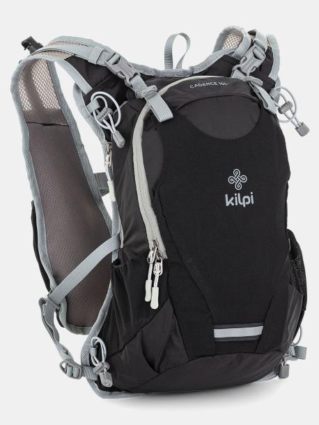 Batoh je velice lehký a přizpůsobivý. Má měkké polstrované záda, které se přizpůsobí pohybům těla. Široké síťované ramenní popruhy jsou nastavitelné propracovaným stahovacím systémem, a mají celkem 4 kapsy - 2 síťované kapsy na gely, nebo silikonové lahve a dvě zipové kapsy. Pomocí bederního a hrudního popruhu s bezpečnostní píšťalkou, je batoh fixovaný a stabilní. Kilpi CADENCE 10-U je kompatibilní s vodním vakem (není součástí batohu). Kapsa je schovaná uvnitř komory a vodní vak se zafixuje pomocí suchého zipu. Přední zipová komora obsahuje přehledný organizér a zipovou kapsu na drobnosti. Běžecké hole je možno uchytit pomocí gumiček. Další dvě kapsy jsou umístěny na bocích a jedna v přední části batohu. Celkový objem batohu je 10 litrů. Nechybí reflexní prvky, které jsou u produktů Kilpi standardem. Hmotnost batohu je 470g a rozměry zad 41cm x 20cm.