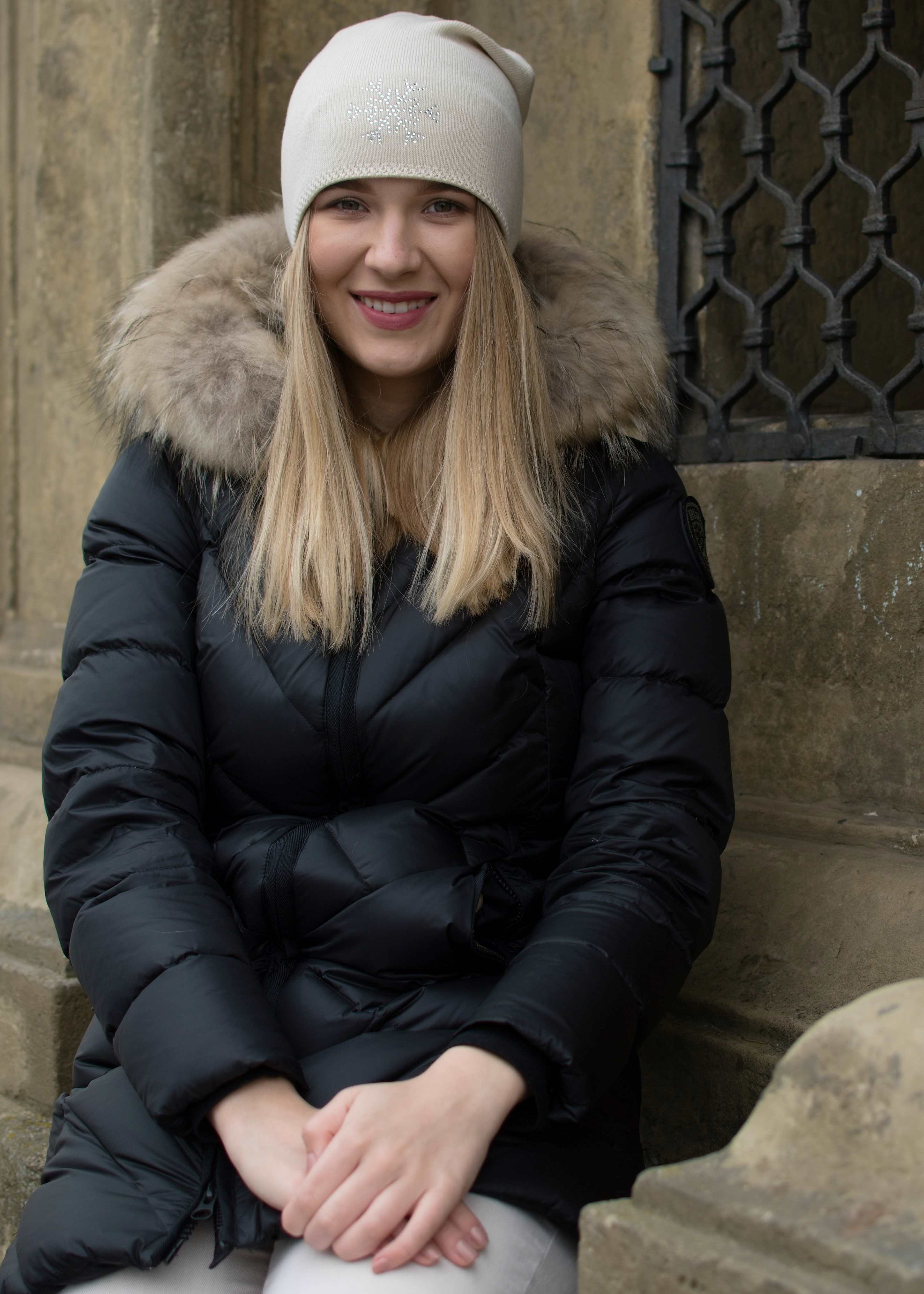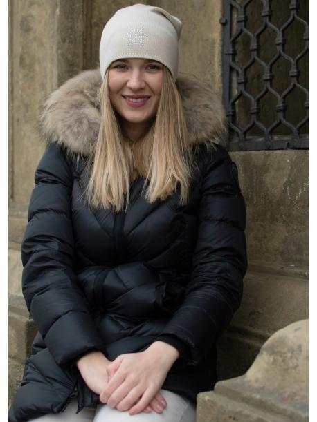 Dámská zimní čepice s ornamenty z kamínků.Vhodná pro zimní sporty i každodenní použití.