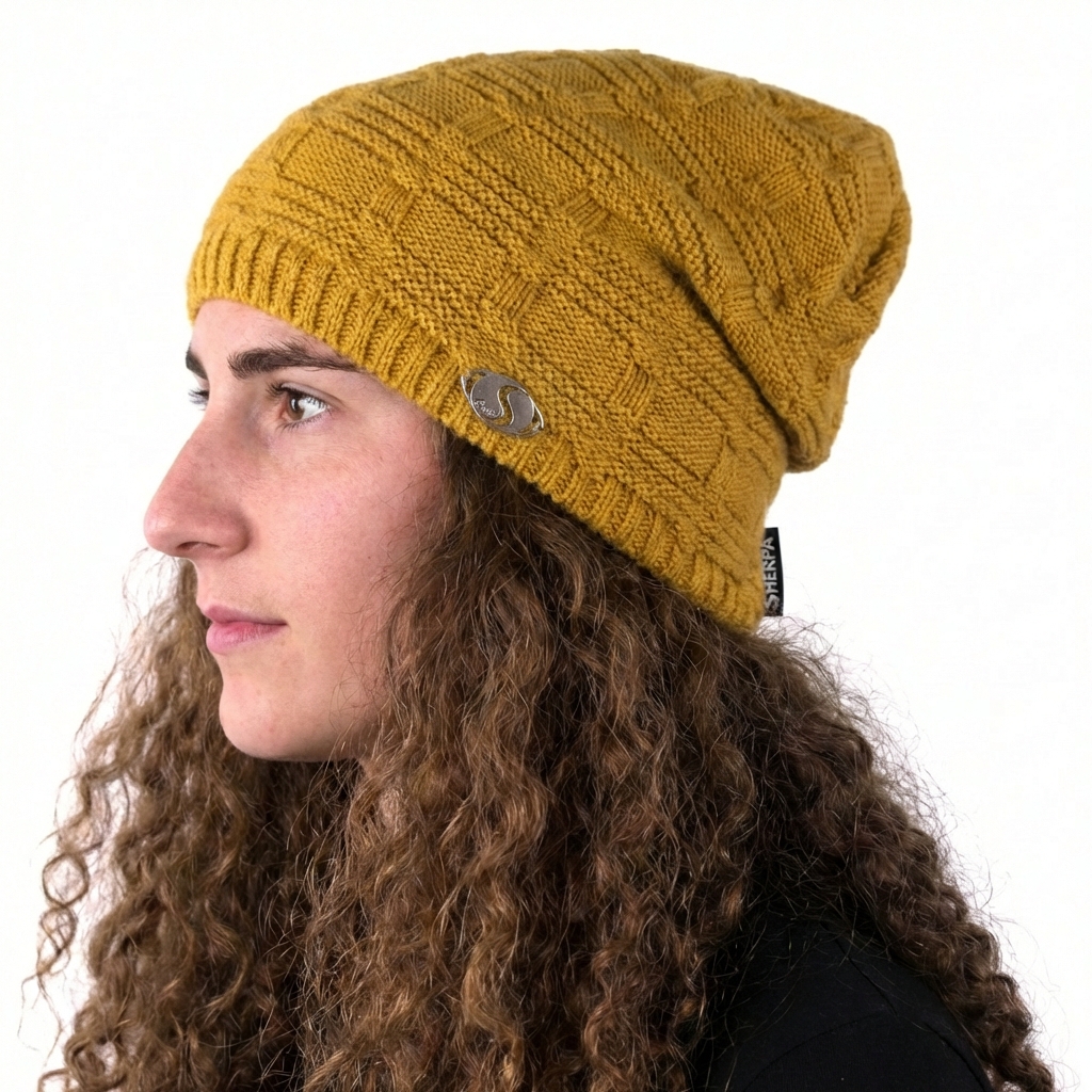 Čepice Sherpa BREEZE patří do skupiny dámských fashion čepic s mírně přepadlým střihem. Má nápaditý plastický vzor a zdobí ji decentní kovové logo s kamínky. Na vnitřní straně má všitou fleecovou čelenku, která zajistí maximální hřejivost a také příjemné nošení.