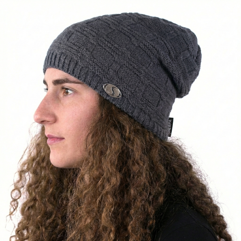 Čepice Sherpa BREEZE patří do skupiny dámských fashion čepic s mírně přepadlým střihem. Má nápaditý plastický vzor a zdobí ji decentní kovové logo s kamínky. Na vnitřní straně má všitou fleecovou čelenku, která zajistí maximální hřejivost a také příjemné nošení.