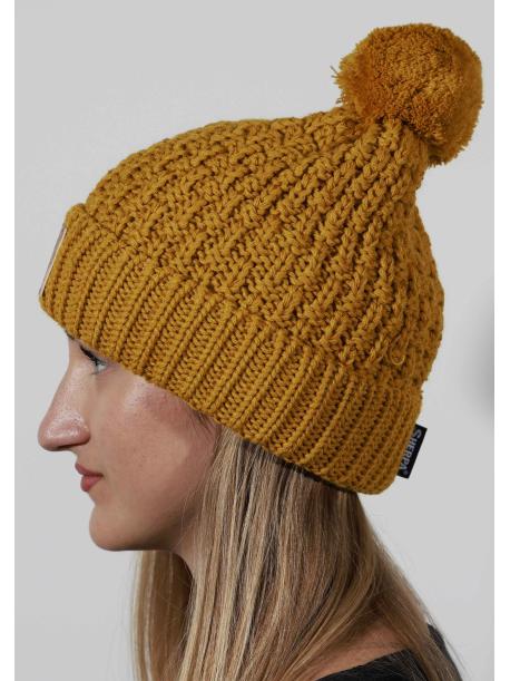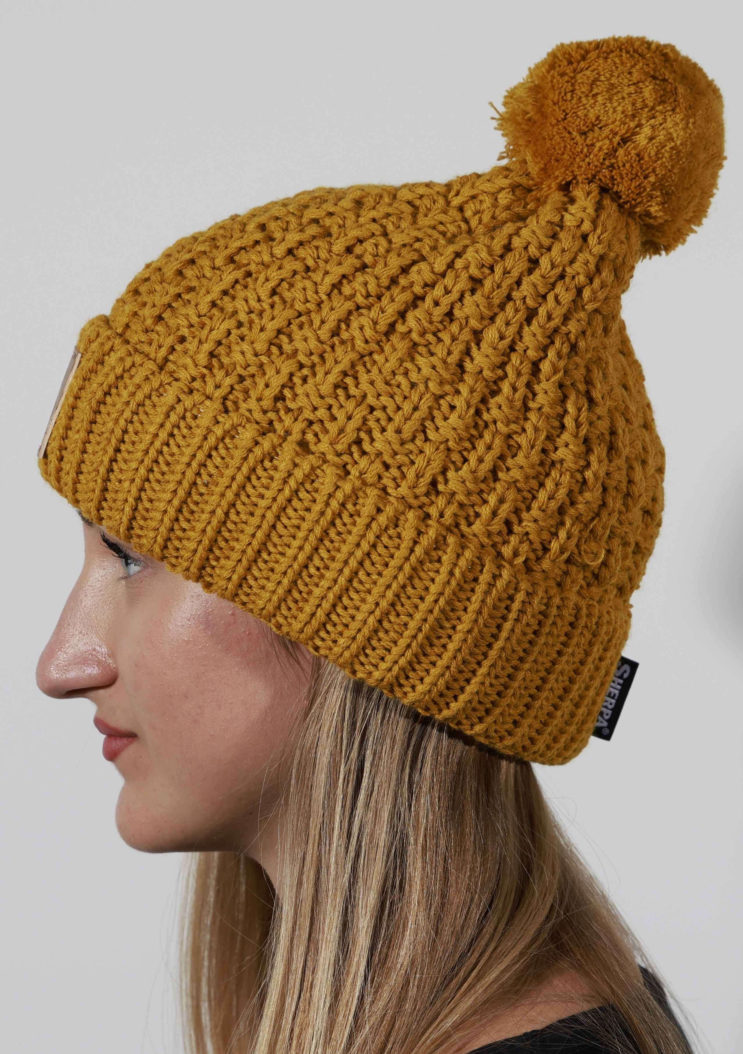Dámská čepice Sherpa SIRIUS skvěle doplní Váš sportovně laděný outfit v mrazivém počasí. Má ohrnutý lem a uvnitř fleecovou čelenku - ta zajistí maximální hřejivost a také příjemné nošení. Tato zimní čepice zaujme zajímavým plastickým vzorem, ohrnutým lemem s koženou nášivkou a menší bambulí.
