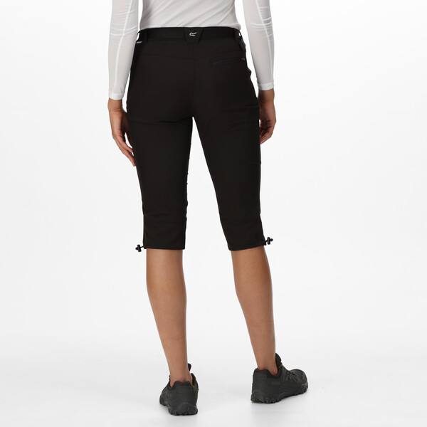 Pánské 3/4 kalhoty Regatta Xert Str CapriIII jsou vyrobeny ze strečového, lehkého, pohodlného materiálu Isoflex. Kraťasy mají pohodlnou délka pod kolena, klasické zapínání zip/knoflík, součástí tohoto modelu je i pásek. Na přední straně najdete dvě hlavní kapsy na zipy, další kapsa je na pravé nohavici a na zadní části. Malý reflexní prvek je umístěn na zadní části, na poutku od pásku. Kalhoty získaly voděodpudivost, díky povrchové úpravě DWR, voda tak po materiálu hezky kuličkuje a nevsakuje se. Ideální model na lehkou turistiku, procházky parkem, při kterých oceníte praktičnost a funkčnost materiálu.