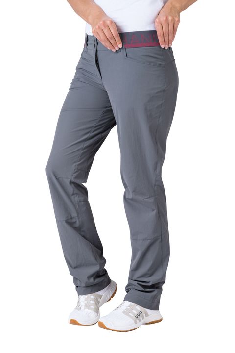 Dámské letní kalhoty Hannah NICOLE využijete zejména na cestování, výlety do přírody či volný čas. Jsou vyrobeny z funkčního a vysoce elastického a prodyšného materiálu AFT Stretch. Užší střih s anatomicky tvarovanými koleny a pas částečně stažený do gumy se dobře přizpůsobí. Kalhoty disponují dostatkem kapes. V přední části jsou dvě hlavní kapsy, v zadní části pak jedna kapsa na zip a na opačné straně jedna volně přístupná.