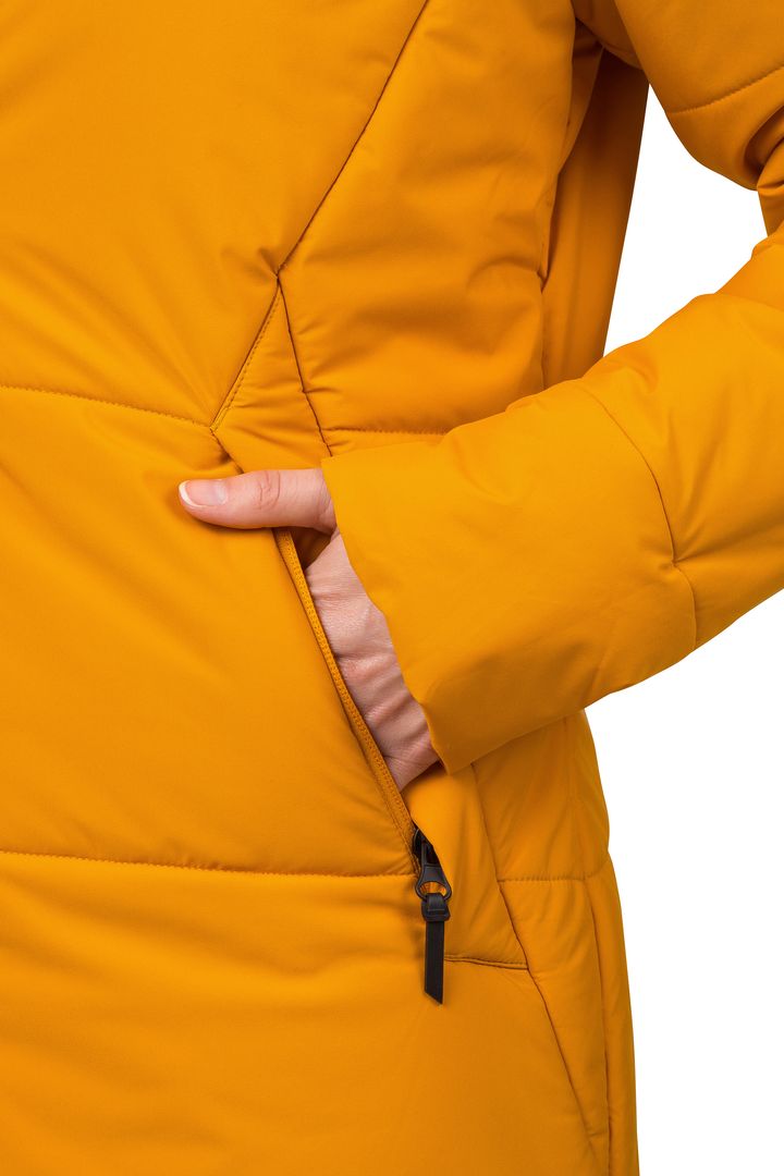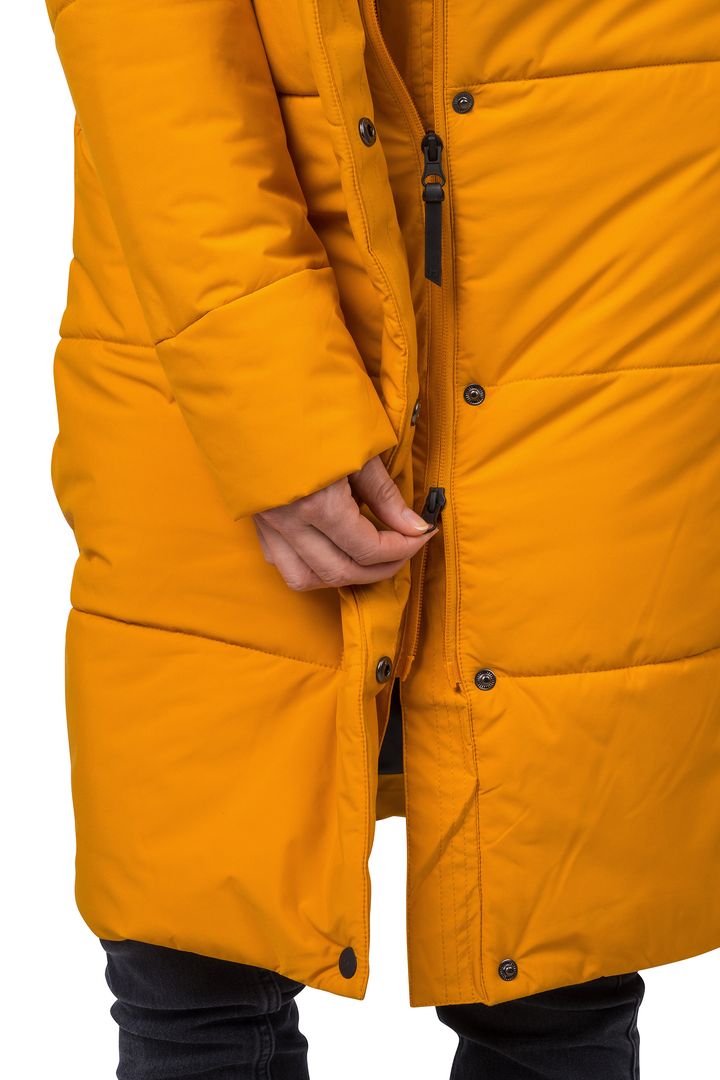 Zimní kabát Hannah NONA je skvělou volbou do města nebo pro volný čas. Odolnost proti dešti, mokrému sněhu i větru zajišťuje membrána Resstex 5000 s DWR úpravou. Kvalitní polyesterové rouno Duratherm High Loft je lehké, nadýchané, měkké a vyniká svými termoizolačními vlastnostmi. Dekorativním i funkčním prvkem jsou boční rozparky na patenty. Rukávy jsou zakončeny vnitřní elastickou manžetou, která zamezuje úniku chladu.