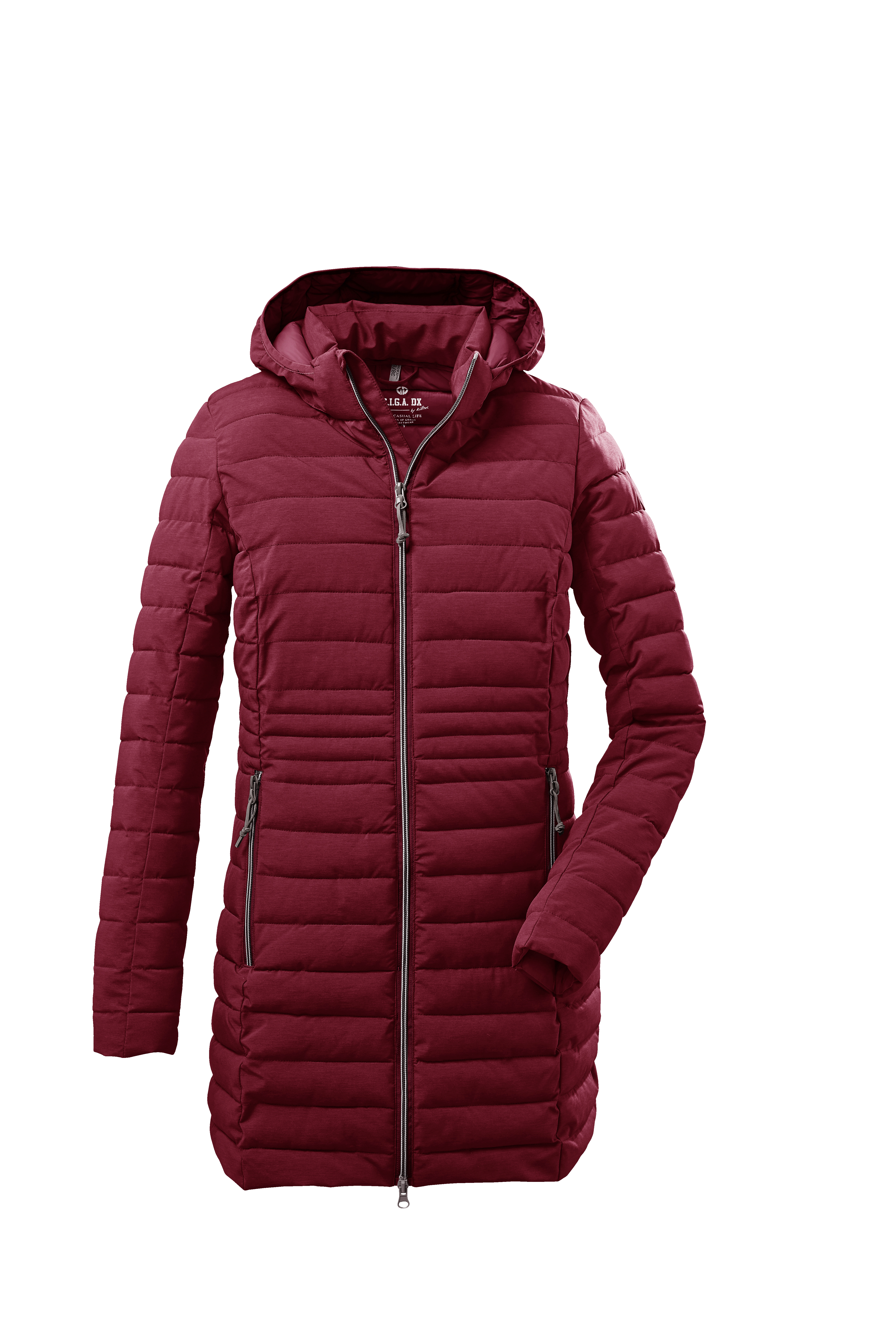 Dámský prošívaný kabát Killtec Bacarya je vyrobený z voděodpudivého, větruodolného, ultralehkého a strukturovaného materiálu. Má hřejivou výplň, polopřiléhavý střih, dekorativní prošití, odepínací kapuci lemovanou gumou, ochrannou krytku u brady a 2 vnější kapsy se zipy. Zdobí ho moderní melírovaný design. Kabát je vhodný pro každodenní nošení od podzimu do jara.