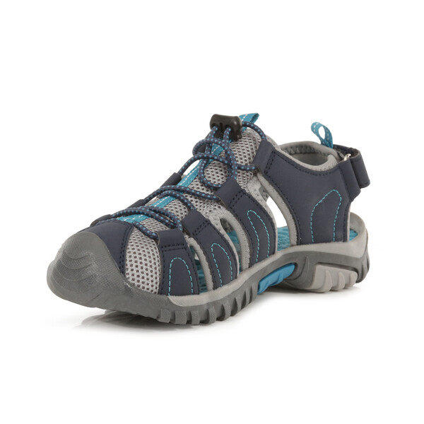 Dětské sandály Westshore Trekking od firmy Regatta udrží děti v pohodě a ochrání nohy při procházkách v přírodě i ve městě. Svršky lemované Spandexem se zapínáním na šňůrku kolem chodidla pro podpůrné uchycení, zatímco konstrukce špičky nárazníku chrání proti nárazům na trati. Pod nohama voděodolná stélka EVA a robustní podešev usnadňují práci s letními sprchami.